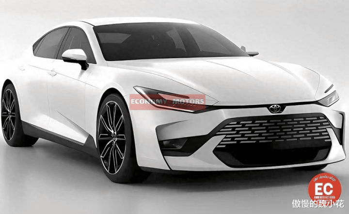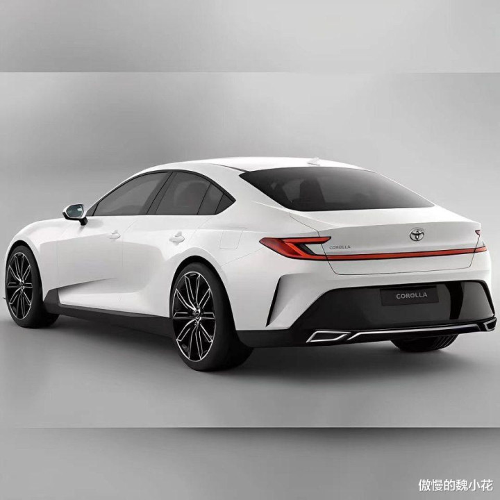 当然,毕竟目前并不是官方消息,所以组图仅供小伙伴们参考。新车的整个外观和我们认识的“卡罗拉”存在巨大区别,几乎看不到任何现款的元素,首先正面,作者将车头设计成了上下双布局,上半部分比较简单,两侧弯刀式的大灯还是非常漂亮,而且内部还穿插着行车灯,对比现款,优势太明显,而连接两侧大灯的是一组内嵌式的装饰带,装饰带的下方则是丰田的牛角标,尺寸略小!下半部分才是整部车的重点,即便是纯电,但保留了进气装置,应该更多的是气起到装饰作用!所以从前脸上看,这款车完全能契合到现阶段小伙伴们的审美。